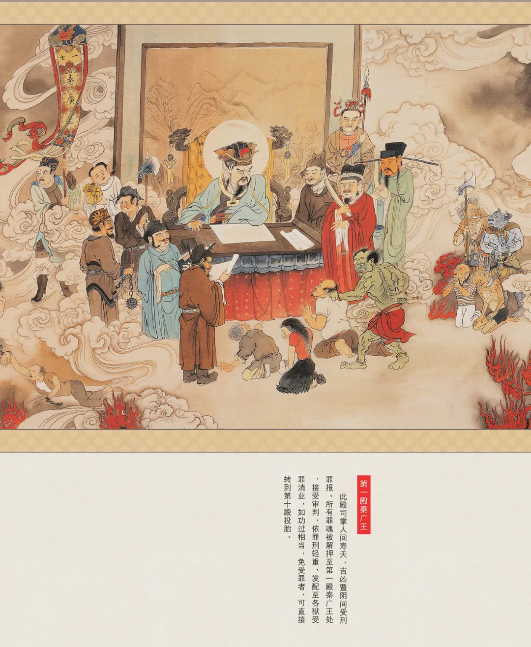 现在的东岳大帝是第一殿秦广王提升上来的,第一殿秦广王是阳间一位正义仁君,寿终时被委派做第一殿阎王。东岳大帝的工作内容相对于冥君阎王的差不多,只是有些灵体魂归地狱后,一定要状告到最高阎王那里;此类灵体基本上全部都会被安排去冥君阎王府邸的审判大殿,由冥君阎王来亲自审判,其实这是人在阳间的习性,事实上所有人来到冥府,冥府的任何一位阎王都是公正严明的。所有阎王都是按照阴律法则、按照因果安排来处理种种个案,决无丝毫偏帮任何亲眷朋友的成份,大家都是看罪灵所犯何罪即判其入何地狱,有何冤情亦发出冥府何类合法索命令牌。”